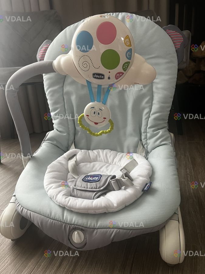 Спинка регулюється, є вібро режим, грає музика. Є можливість підколихувати дитину