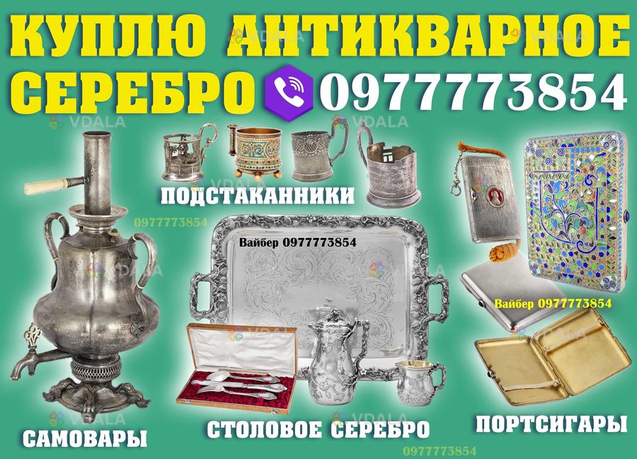 Покупаем столовое серебро, портсигары, подстаканники, самовары !