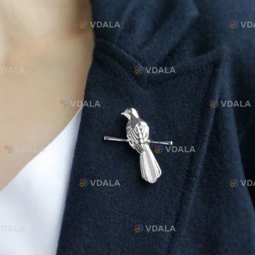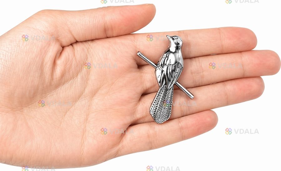Символ — изящная птица пересмешник, воплощающая остроумие, наблюдательность и умение выживать среди опасных политических ветров. Размер броши идеально сбалансирован: 5×2 см сама птица и 4 см перекладина — украшение не останется незамеченным, но и не выглядит вызывающе.