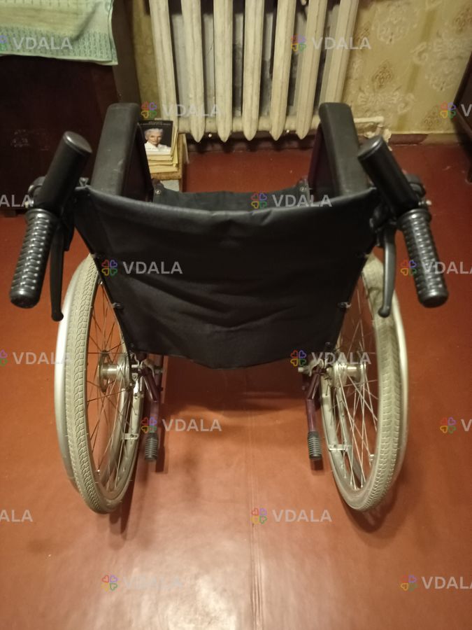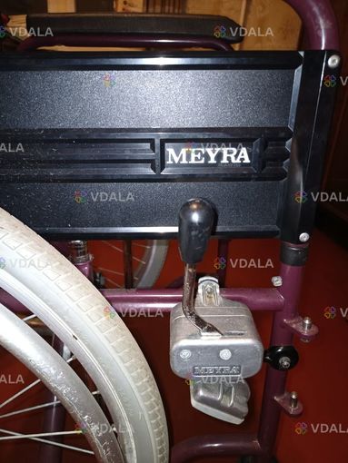 Середньоактивне крісло колісне "Meyra". В робочому стані, перед продажем замінені шини та камери в колесах на нові. Ручні тормози на ручках та з боків сидіння працюють, на ручках поставлені додаткові вертікальні рукояті для комфорту супроводжуючого на прогулці.