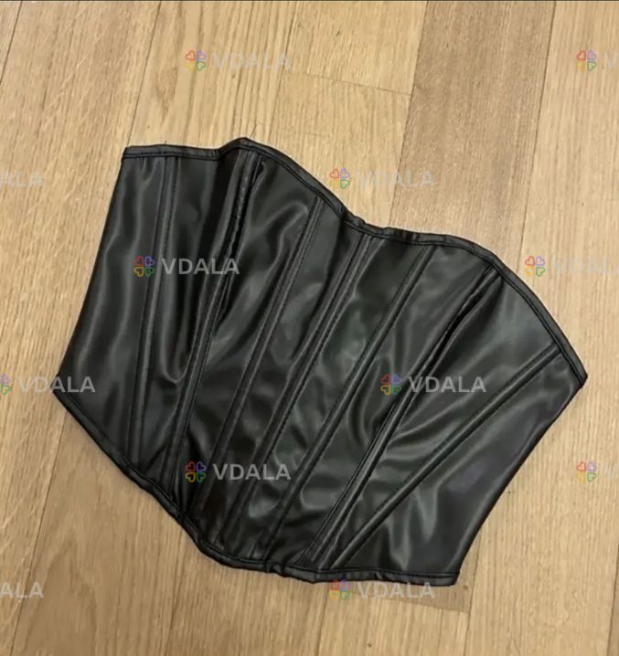 Корсет зшитий з густої тканини чорного кольору з шнуруванням на спинці.