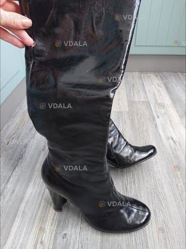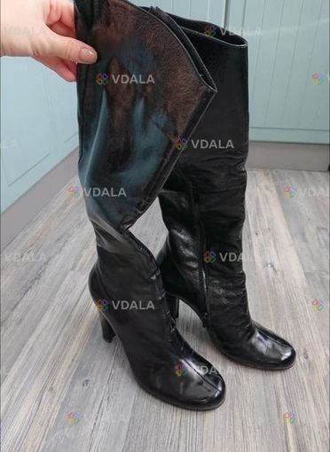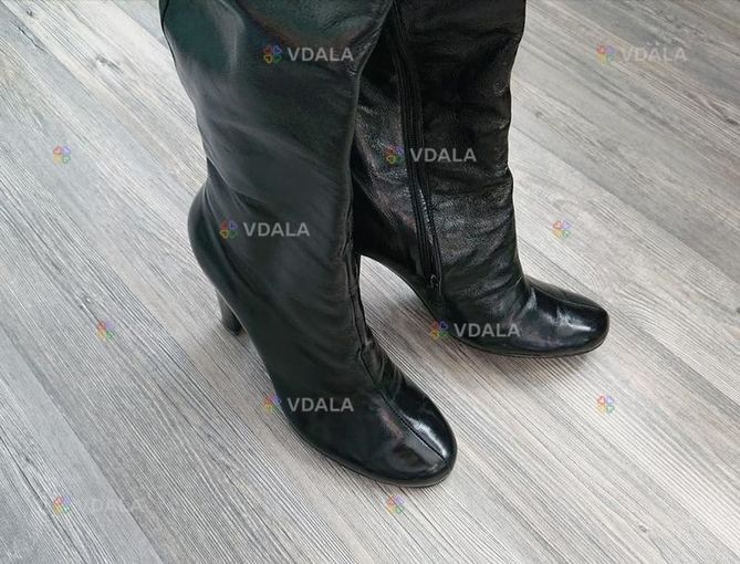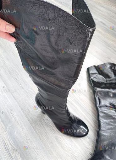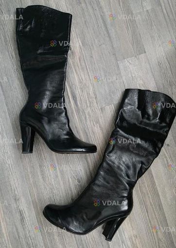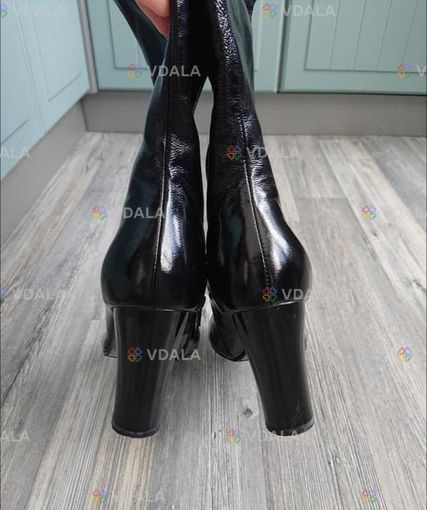 Черные кожаные сапоги на каблуке, натуральная лакированная кожа внутри утиплены, подойдут на межсезонье