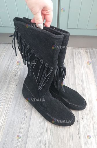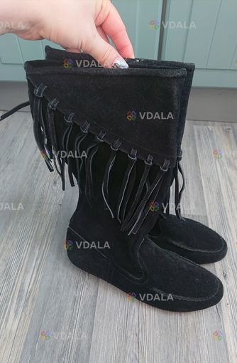Красивые кожаные сапоги с бахромой, состояние отличное