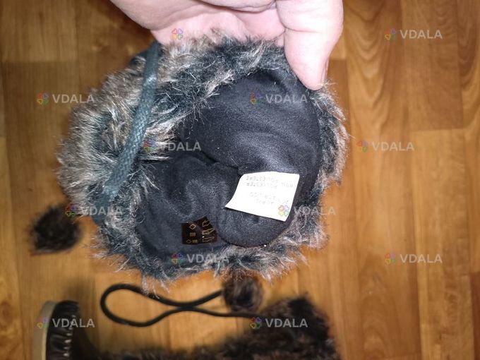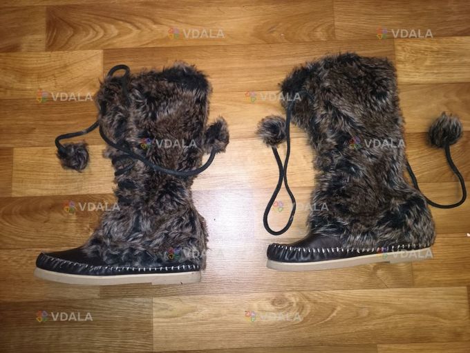 Дамські ботильйони з м'якого бархатистого штучного хутра коричневого кольору з кисточками на шнурках. Розмір орієнтовно 36-37 (по подішві 24 см). Ботінок - шкіра кольору, тип макасін.
