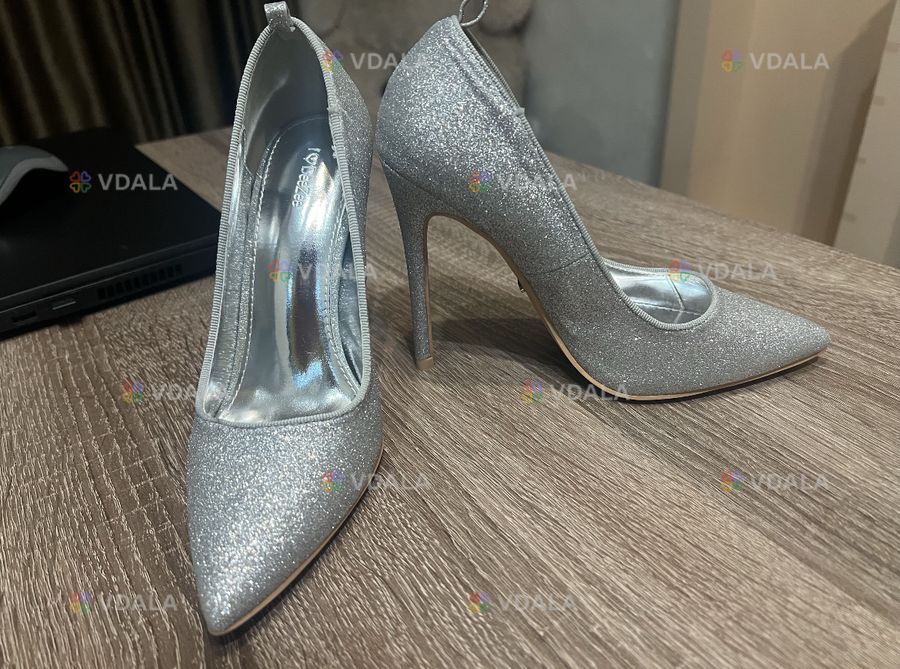 Жіночі туфлі на підборі. 36 розмір. Сірого кольору, блискучі. Висота підбору 11 см. Нові, в ідеальному стані. Не ношені, не підійшов розмір.