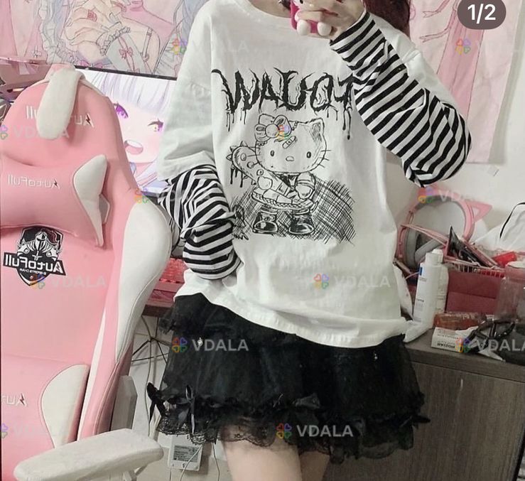 неймовірний якісний лонг з принтом хеллоу кітті та смугастими