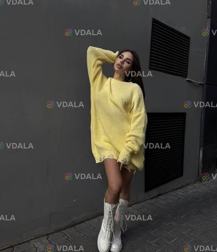 розривами. Модель вирізняється широким рукавом із заниженою лінією плеча і манжетами, на яких також присутні розриви.