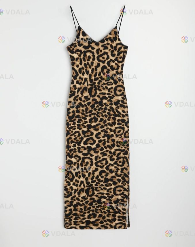 Сукня-міді sinsay у леопардовому принті, приталений силует, легка тканина, якраз для літа, не просвічується. Сукня нова,не одягалися ні разу, але без білки. Розмір 46-48, але тканина дуже еластична тому, комфортно буде і на 48-50.