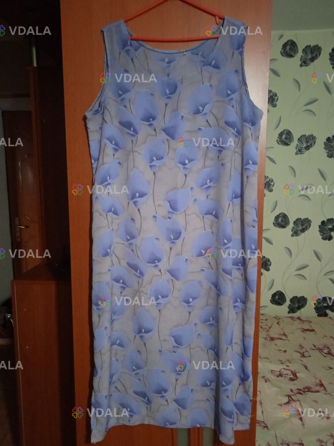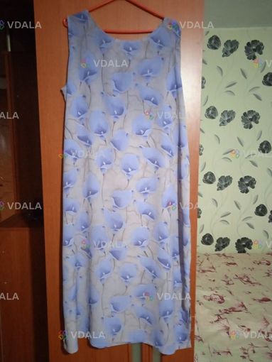 укня блакитна з квітами у відмінному стані - розмір 52-54, довжина 116 см, ширина по грудях 59 см, по стегнах - 67 см. Дуже легка, простора