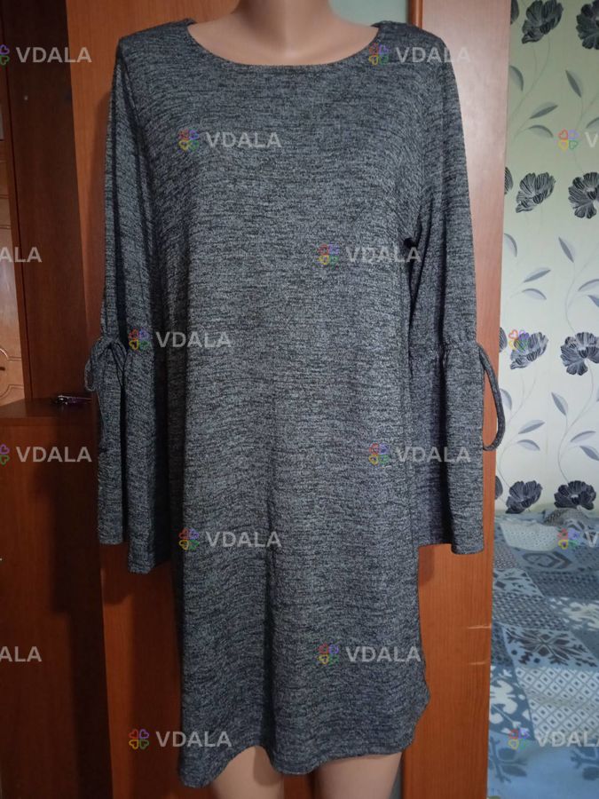 Сукня сірого кольору у відмінному стані - розмір L (50), довжина 88 см, рукав 61 см, ширина по грудях 54 см, тягнеться до 70 см, ширина по стегнах 56 см, тягнеться до 72 см