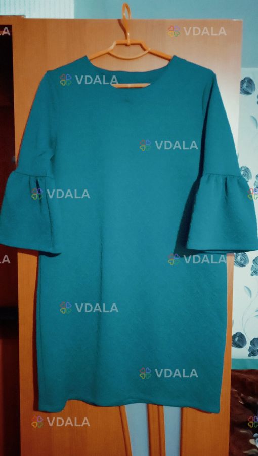 Сукня темно-ізумрудна (колір ближче до останнього фото) у відмінному стані - розмір 50-52, довжина 91 см, рукав 3/4, ширина по грудях 56 см, тягнеться до 65 см, ширина по стегнах 59 см, тягнеться до 68 см