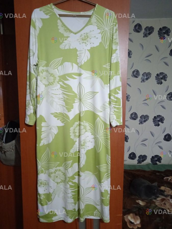 Сукня тонка ніжного салатового кольору з білим у відмінному стані - розмір 52, довжина 116 см, рукав 56 см, ширина по грудях 59 см, тягнеться до 72 см, ширина по стегнах 60 см, тягнеться до 73 см