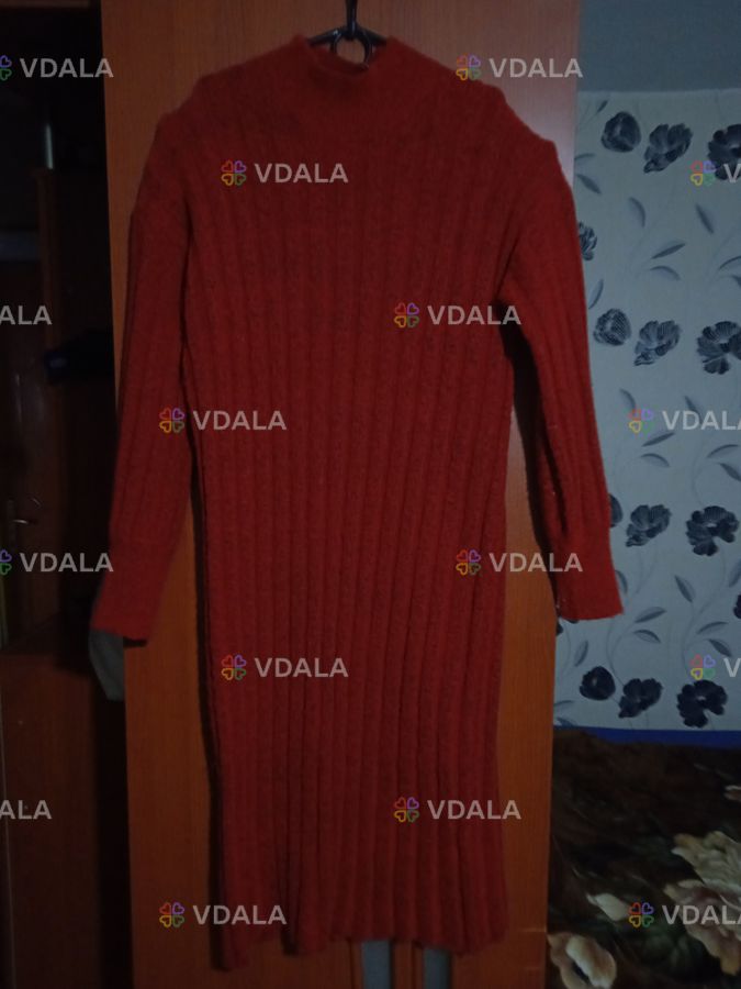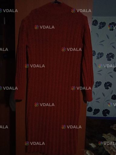 В'язана тепла сукня темно-червоного кольору у відмінному стані. Розмір вказаний М, але нормально носилося на 50-52 розмір. Довжина 112 см, плече занижене, тканина дуже тягнеться, у складі - вовна