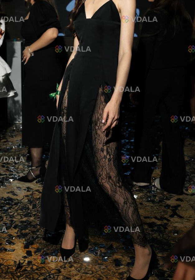 Сукня має два розрізи які можна регулювати за допомогою змійки, та має другий шар мережива.