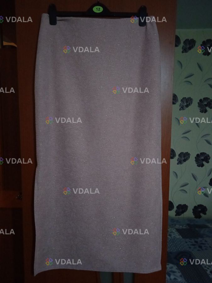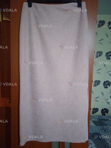 Спідниця довга з розрізами рожевого кольору у відмінному стані - р. 50-52, довжина 98 см, пояс-резинка, тканина трохи блискуча