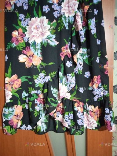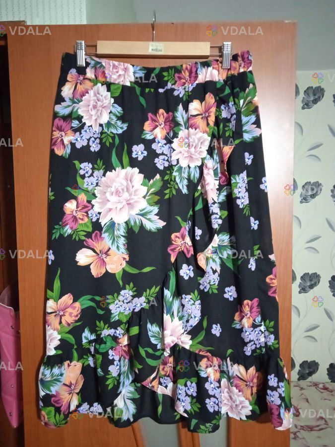 Спідниця на запах чорна з квітами у відмінному стані - розмір вказаний S, але я носила на 50-52 розмір. Довжина сзаду 76 см, пояс-резинка