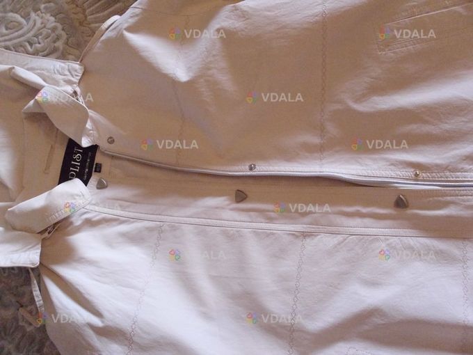 Продам легку куртку( вітровку) PLIST ніжно-кремового кольору на підкладці, зі знімним капюшоном, розмір 50. Застібка на блискавці і кнопках, силует прямий, круглий комірець, прорізні кишені, на підкладці кишеня на блискавці, рукав можна підкочувати. В якості оздоблення — декоративна поперечна строчка. Довжина куртки — 75см, ширина плечей — 46см, напівокружність грудей — 58см, напівокружність стегон - 62см. Куртка в чудовому стані — без зачіпок і плямок.