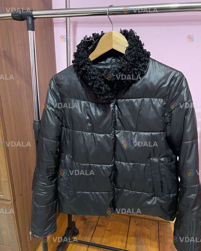 Стильна коротка зимова куртка чорного кольору, тепла та легка, ідеально підійде для холодної осені та зими.
