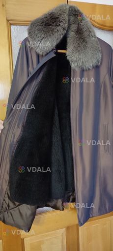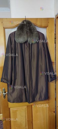 Женское плащ-пальто с съёмным утеплителем и меховым воротником (воротник натуральный и утеплитель съёмный).Цвет коричневый переливающийся.